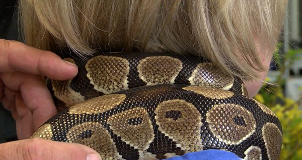 這條蟒蛇名叫蒙蒂,身長約1.22米,它每周“工作”兩天,為顧客提供專業的按摩服務。只見它先纏繞在顧客的脖子上,通過收縮或放松肌肉來為客人按摩。一名顧客表示,盡管按摩時非常緊張,但蒙蒂的按摩方式獨到有力,因此她還會再次光臨。