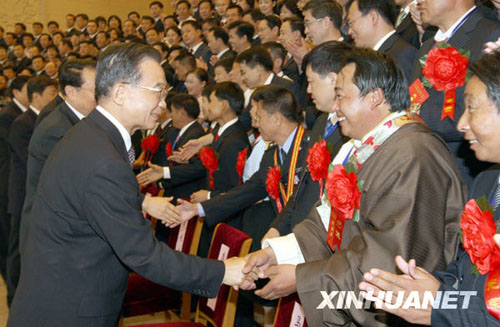 8月14日,第七屆全國“人民滿意的公務(wù)員”和“人民滿意的公務(wù)員集體”表彰大會在北京舉行。會前,中共中央政治局常委、國務(wù)院總理溫家寶,中共中央政治局常委李長春,中共中央政治局常委、中央書記處書記、國家副主席習(xí)近平會見與會部分代表。新華社記者姚大偉攝