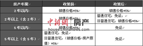 表:二手房營業稅政策調整前后對比