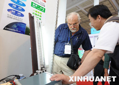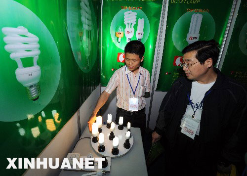 4月8日,一位澳大利亞客商(左)對臺交會上展出的節(jié)能燈產(chǎn)品產(chǎn)生濃厚興趣。 當日,第十二屆臺交會在廈門國際會展中心舉行,兩岸參展企業(yè)展出的節(jié)能照明、太陽能應(yīng)用等產(chǎn)品不僅增添了本屆臺交會節(jié)能環(huán)保的特色,同時受到廣大客商的青睞。 新華社記者姜克紅攝