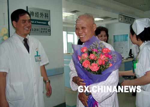中新廣西網(wǎng)10月7日電(譚德軍 林艷華)“這里的治療比臺灣還好!”發(fā)出此番感慨的是今日從廣西壯族自治區(qū)人民醫(yī)院神經(jīng)外科康復出院的臺灣游客黃先生,臨出院時,該院神經(jīng)外科還專門給他贈送了一束祝福鮮花。
