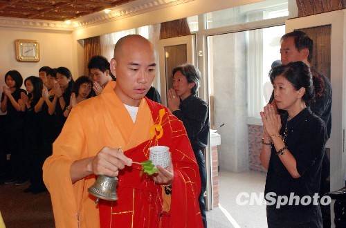 10月19日,臺(tái)灣“神探”莊亨岱落葉歸根,其靈骨在其親友的護(hù)送下安奉泉州市清源山莊氏碩園祖祠墓園。本次從臺(tái)灣護(hù)送莊先生靈骨歸鄉(xiāng)的臺(tái)灣親屬有18人,還有一些莊亨岱生前的臺(tái)灣好友也自發(fā)坐飛機(jī)趕來(lái)為莊先生送行。“父親落葉歸根,回到了生他養(yǎng)他的故鄉(xiāng)。”其大女兒莊乃瑞為父親魂歸故里祈禱。 中新社發(fā) 傅丹丹 攝