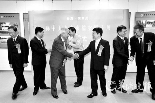 廣東省立中山圖書館的負(fù)責(zé)人將孫中山的珍貴文件仿真件帶來臺(tái)北,作為禮品送給臺(tái)北中山紀(jì)念館。