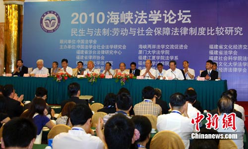 8月18日,2010年“海峽法學論壇”在福州舉行。兩岸四地300多名法學專家學者和法律實務界人士,就大陸正在制定的《社會保險法》展開深入探討,同時對海西經濟建設發展建言獻策。中新社發 張麗君 攝