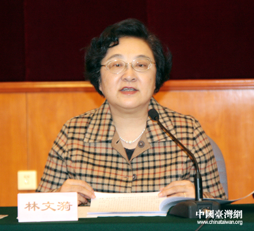 臺(tái)盟中央主席林文漪在座談會(huì)上作動(dòng)員講話 (中國(guó)臺(tái)灣網(wǎng) 孫金誠(chéng) 攝)