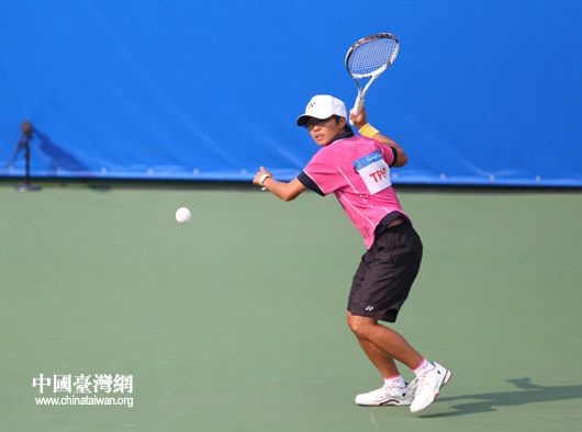 中華臺北隊女子軟式網球選手江婉綺在比賽中。(中國臺灣網 鐘寶華 攝)