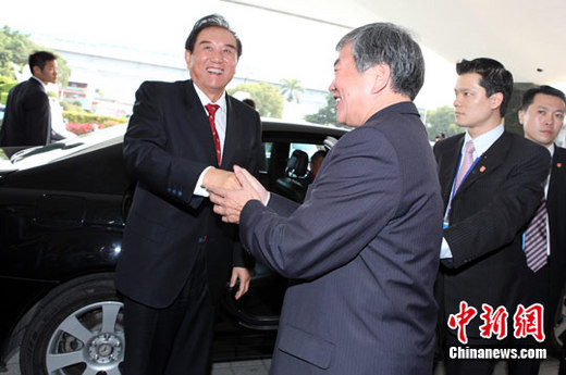 海峽兩岸關系協會會長陳云林24日首度跨越濁水溪,率團來到高雄市繼續經貿考察之旅。