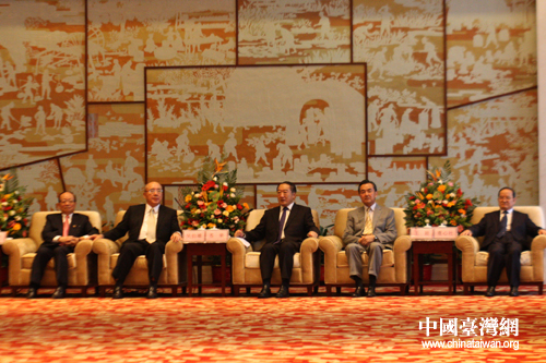 會見現場。圖中從右至左依次為鹿心社、王毅、蘇榮、吳伯雄、蔣孝嚴。(中國臺灣網 邢同林 攝)