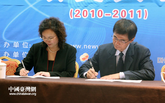 在活動現場,中國臺灣網總經理總編輯劉曉輝與臺灣亞洲大學副校長鄧成連教授簽訂了2012海峽兩岸大學生網絡商務創新應用大賽合作意向書。該意向書旨在促進兩岸大學生交流與互相了解,深化兩岸青年對大陸與臺灣商業環境、文化環境的認識,把握“海峽兩岸經濟合作框架協議”(ECFA)簽署后為兩岸帶來的機遇與挑戰,推動兩岸互聯網及其商務應用(電子商務)的發展與合作,并促進兩岸大學生的社會實踐與商業創新實踐,提升職業能力與就業力。(記者 李丹)