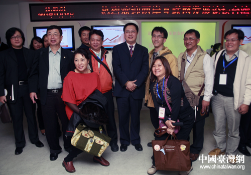 臺灣嘉賓參訪在京知名網站,在參訪過程中合影留念。(中國臺灣網 于斯文 攝)