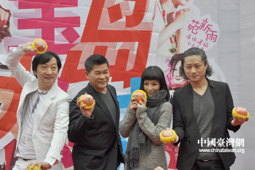 臺灣藝人澎恰恰、九孔、陳怡蓉等專程飛抵上海,為臺灣甜柿造勢。(中國臺灣網(wǎng)發(fā))