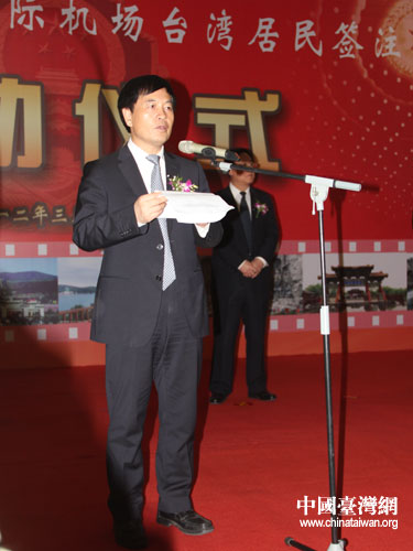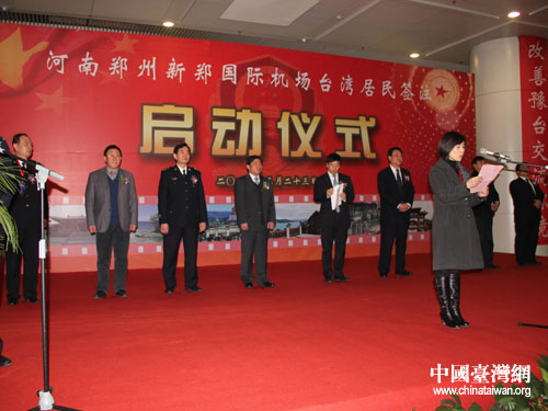 河南省副省長秦玉海在儀式上致辭指出,近年來,河南經濟社會快速發展,已成為全國重要的農業大省、新興工業大省和有影響的文化大省,越來越多的臺胞來河南旅游、經商、探親、尋根拜祖,開通臺灣居民簽注業務具有非常重大的現實意義和極其深遠的歷史影響。他要求省公安廳出入境管理部門要始終以服務豫臺交流、服務中原經濟區建設為中心,把機場簽注處打造成服務豫臺交流和展示河南形象的品牌和亮點。