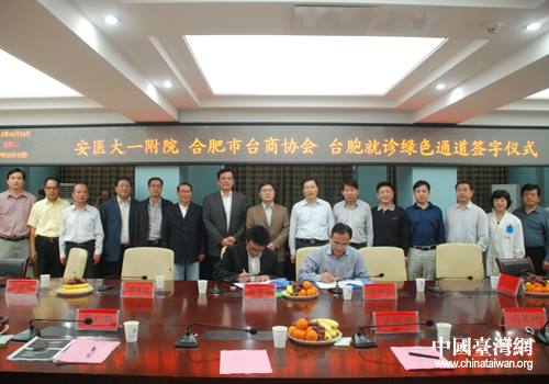 安徽醫科大學第一附屬醫院院長余永強、合肥市臺商協會會長吳安國分別在《臺胞就醫綠色通道協議》上簽字。根據協議,醫院將為在合肥投資辦企業、工作、定居的臺胞、關系密切的所屬企業管理人員(持有臺胞證)的就醫看病、健康體檢開辟綠色通道,為臺胞在合肥市生活提供便利。(中國臺灣網、合肥市臺辦聯合報道)