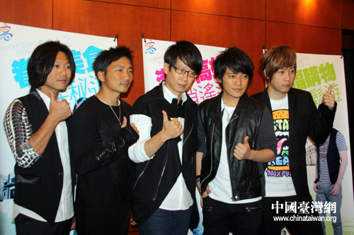 高雄副市長劉世芳與五月天、電音三太子一起為推介高雄旅游站臺。