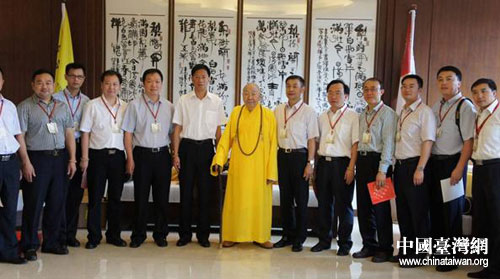 四川省委常委、副省長(zhǎng)鐘勉拜會(huì)中臺(tái)禪寺惟覺(jué)大師。圖片來(lái)源:四川省臺(tái)辦