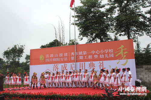 四川省綿陽市安縣秀水鎮(zhèn)第一中心小學學生在落成儀式上進行文藝表演。(圖片來源:綿陽市臺辦)