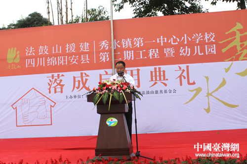 張世虎代表綿陽市委、市政府和市人大、市政協(xié)對安縣秀水一小二期工程暨幼兒園落成啟用表示熱烈祝賀。他說,地震后四年來,在包括臺灣同胞在內的全國人民鼎力援助下,全市人民奮力推進“三個加快”,創(chuàng)造了抗震救災、災后重建和加快發(fā)展的奇跡,綿陽從廢墟走向新生。他表示,全市人民將永遠銘記以法鼓山慈善基金會為代表的臺灣團體、企業(yè)和廣大臺灣愛心人士為綿陽市捐建教育、衛(wèi)生等25個公益項目,捐建資金達2.4億元,身體力行詮釋了慈善事業(yè)的精義,臺灣民眾的大愛和善行將光照千秋。