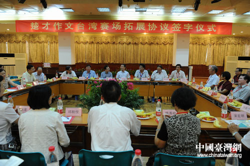 楚才作文臺(tái)灣賽場(chǎng)拓展協(xié)議簽字儀式。(湖北省臺(tái)辦 陸勝 攝)