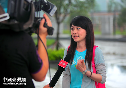 臺(tái)灣“中視”公司節(jié)目主持人蕭羽潔接受德陽電視臺(tái)采訪。(圖片來源:德陽市臺(tái)辦)