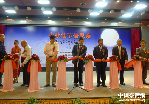 中國臺灣網9月19日北京消息 今天上午,“中秋佳節倍思親——海峽兩岸書畫交流展”在北京臺灣會館隆重開幕。北京市人民政府臺灣事務辦公室副主任高振生、北京市臺灣同胞聯誼會副會長鄭大、北京海峽兩岸書畫家聯誼會會長黎晶、北京臺資企業協會理事長林清發、臺灣彰化書法學會理事長王秋鵬以及來自京臺兩地100多位書畫名家和各界人士出席了開幕式。