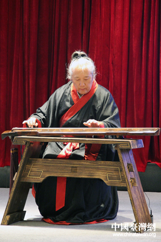 海峽兩岸傳統(tǒng)文化藝術(shù)雅集5日下午在北京前門的臺灣會館舉行。中國琴會副會長、秘書長楊青獻(xiàn)藝。(中國臺灣網(wǎng) 楊麗 攝)
