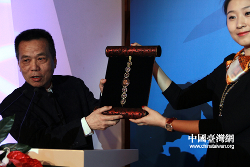 洽談會(huì)上,來(lái)自臺(tái)灣的許伯夷特意捐贈(zèng)了一塊造型精美、價(jià)值不菲的名表,祝賀兩岸在文創(chuàng)產(chǎn)業(yè)人才方面展開(kāi)合作。(中國(guó)臺(tái)灣網(wǎng) 楊麗 攝)
