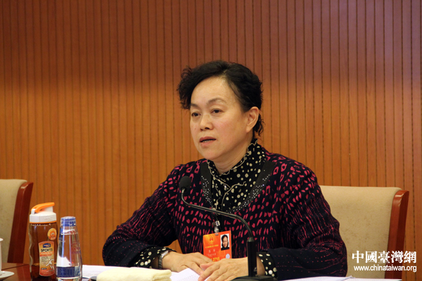 十二屆全國人大一次會議臺灣省代表團討論政府工作報告,陳云英代表發(fā)言。(中國臺灣網(wǎng) 楊麗 攝)