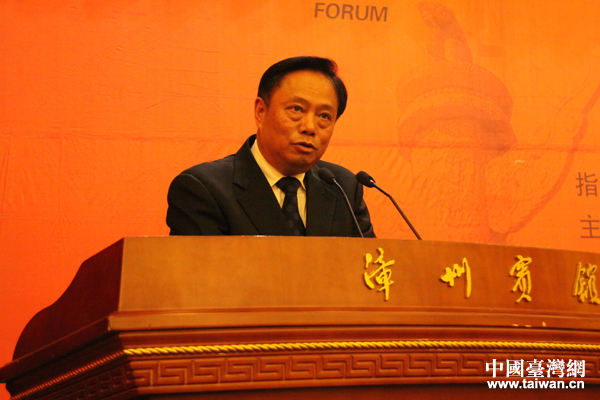 全國(guó)臺(tái)聯(lián)黨組書(shū)記梁國(guó)揚(yáng)在論壇現(xiàn)場(chǎng)發(fā)表致辭。(中國(guó)臺(tái)灣網(wǎng) 孟雅詩(shī) 攝)
