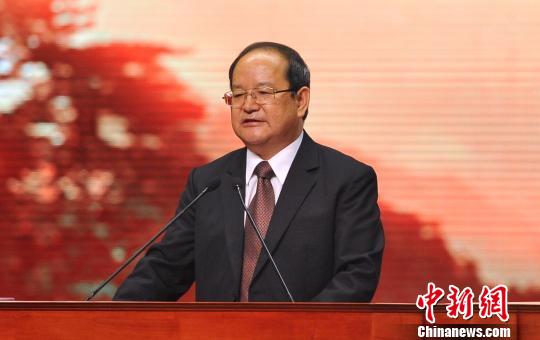 中國國民黨榮譽副主席蔣孝嚴在大會開幕式上發言。 劉占昆 攝