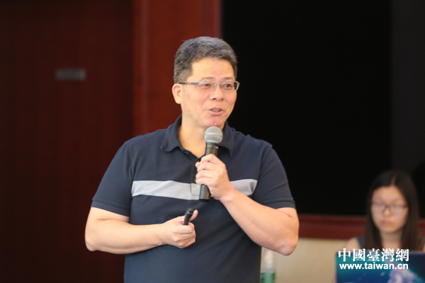 在昨日舉行的兩岸青創產業園區發展研討會上,復客中國昆山兩岸青創園總經理卓強在分享兩岸創業園區成功經驗。(中國臺灣網 于斯文 攝)
