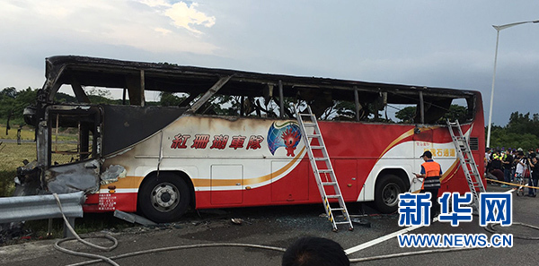 2016年7月19日,臺灣游覽車起火造成26人罹難,包括24名大陸游客。這是7月19日拍攝的事故車輛。新華社發(fā)