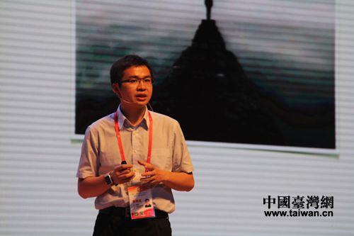 北京創(chuàng)業(yè)公社高級經(jīng)理兼臺灣專區(qū)負(fù)責(zé)人、海峽兩岸青年交流協(xié)會執(zhí)行長鄭博宇發(fā)表主題演講。(中國臺灣網(wǎng)記者 馬萌 攝)