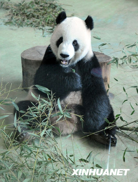 先來看看臺北市立動物園2008年迎接“團團”“圓圓”時開出的“接風菜單”:不僅有隨專機帶來的大陸“家鄉菜”——箭竹、水竹和黑竹,也包括臺灣產的綠竹、桂竹和箭竹,以及1.2公斤融合川味與臺灣風味的窩窩頭。