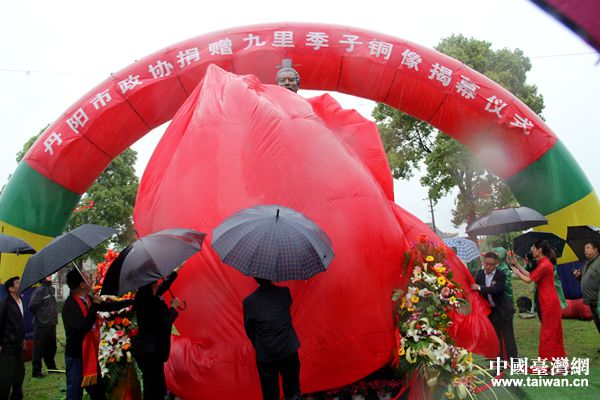 江蘇省丹陽市在季子廟舉行了季子銅像揭牌儀式。(中國臺灣網 李杰 攝)