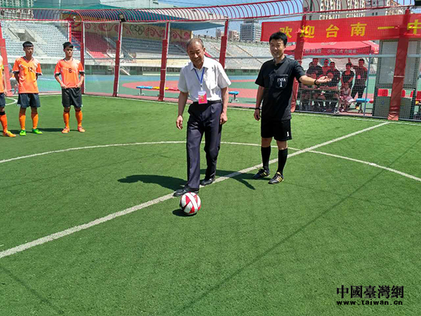 遼寧省政協副主席王松在賽前進行開球儀式。(中國臺灣網 韓靜 攝)