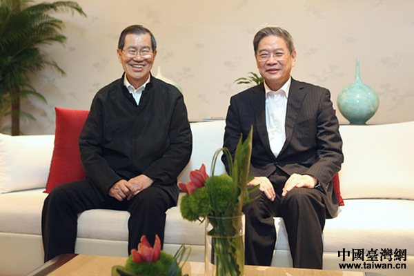 5日,中共中央臺辦、國務院臺辦主任張志軍在南京會見了前來參加2017兩岸企業家紫金山峰會的臺灣兩岸共同市場基金會榮譽董事長蕭萬長。(中國臺灣網 扶海濤 攝)
