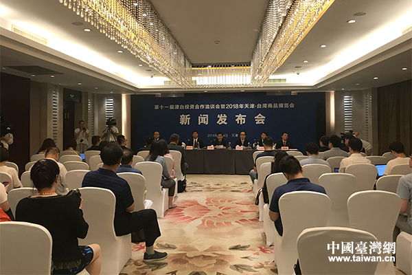 第十一屆津臺投資合作洽談會暨2018年天津·臺灣商品博覽會新聞發(fā)布會4日下午在天津舉行。(中國臺灣網(wǎng) 趙苗青攝)