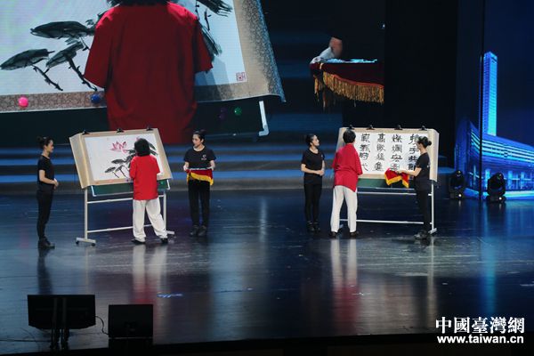 浙江省殘疾人藝術團陳偉強、丁京華表演無臂書法、繪畫。(中國臺灣網 李奕均 攝)