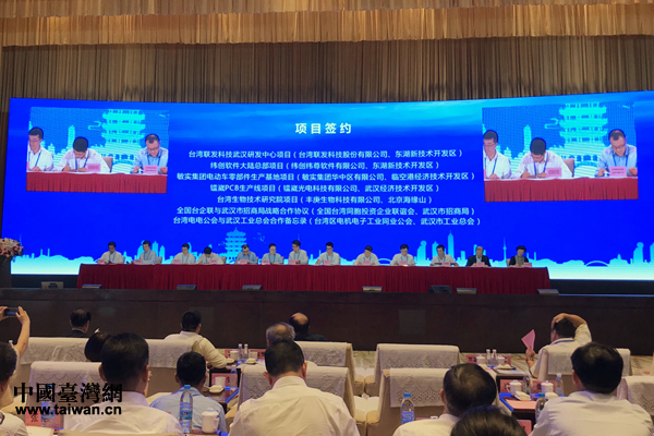 論壇現(xiàn)場,臺(tái)灣聯(lián)發(fā)科技武漢研發(fā)中心項(xiàng)目、緯創(chuàng)軟件大陸總部項(xiàng)目、敏實(shí)集團(tuán)電動(dòng)車零部件生產(chǎn)基地項(xiàng)目、鐳崴PCB生產(chǎn)線項(xiàng)目、臺(tái)灣生物技術(shù)研究院項(xiàng)目等7項(xiàng)合作成功簽約。