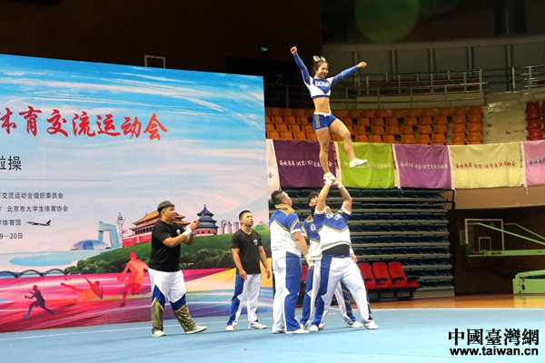 中國臺灣網7月20日北京訊 (記者 尹賽楠)激情夏日,是燃燒的季節。7月20日上午,海峽兩岸(北京)體育交流運動會啦啦操比賽在北京理工大學拉開帷幕。來自北京體育大學、北京工商大學、首都體育學院、中華女子學院、臺灣體育大學、世新大學、實踐大學在內的7支兩岸啦啦操代表隊共聚于此,同場競技,譜寫出一曲力量與美相結合的體育盛會。