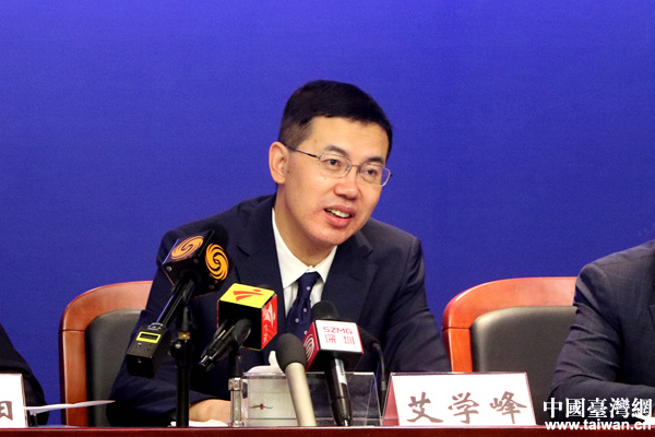 深圳市副市長艾學峰介紹深圳市貫徹落實“31條惠及臺胞措施”的相關情況。(中國臺灣網 尹賽楠 攝)