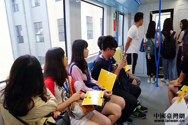 同學(xué)們體驗(yàn)乘坐熊貓空鐵,贊嘆速度快又很平穩(wěn)。(圖片來源:四川臺辦)