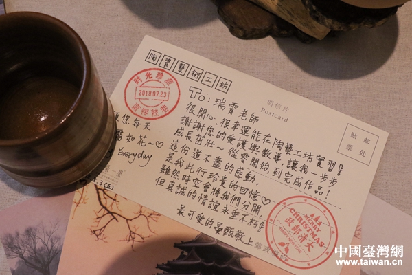 劉晏甄與她的陶瓷手工藝品。(中國臺灣網 張露露 攝)