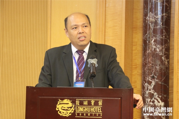 中國國民黨前主席洪秀柱特別顧問兼大陸事務部主任、臺灣競爭力論壇學會大陸政策研究中心主任黃清賢致辭。(中國臺灣網 李寧 攝)