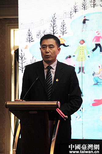 張家口市商務(wù)局副局長宋愛生致辭。(中國臺(tái)灣網(wǎng) 賈若瀾 攝)