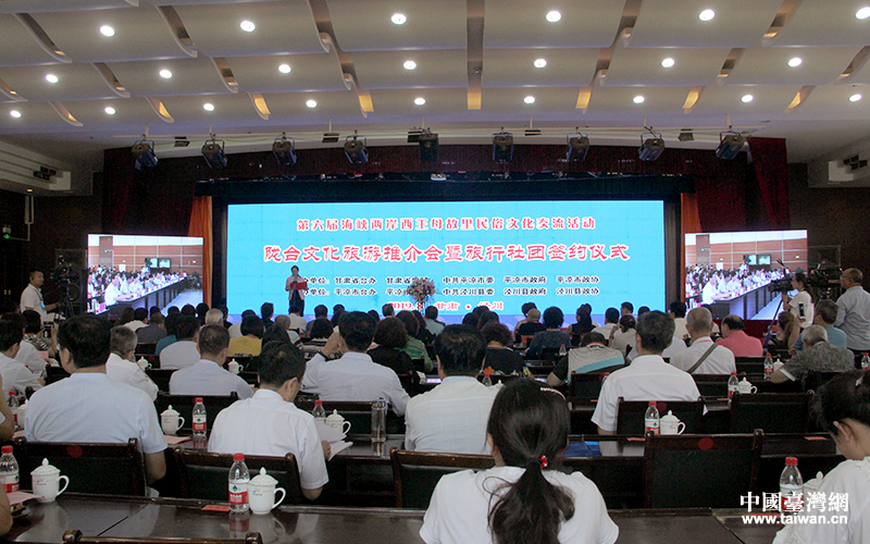 隴臺(tái)文化旅游推介會(huì)暨旅行社團(tuán)簽約儀式18日下午在涇川舉行。(中國(guó)臺(tái)灣網(wǎng) 普燕 攝)
