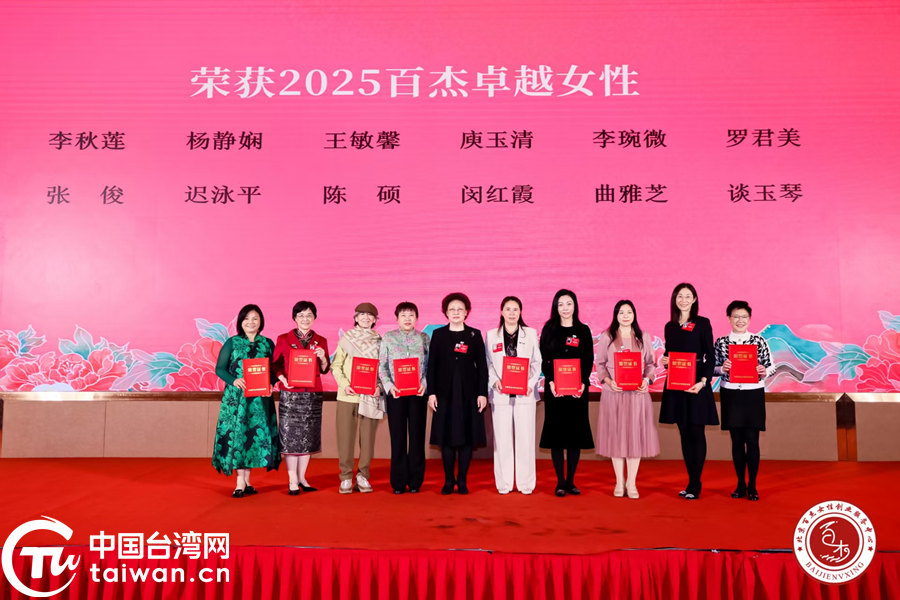 “2025百杰卓越女性”獲獎者分批上臺接受榮譽證書。(中國臺灣網發)