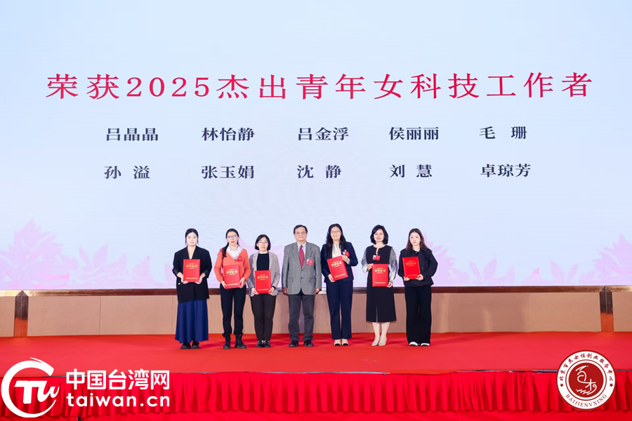 “2025杰出青年女科技工作者”獲獎者分批上臺接受榮譽證書。(中國臺灣網發)