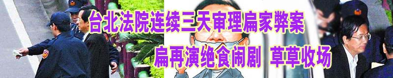 臺北地方法院24日開庭審查陳水扁涉及的公務機要費等弊案,經(jīng)過漫長審訊,最后在陳水扁獨白近二小時后,庭訊于晚間7時許結(jié)束。在庭訊中,陳水扁可謂是使出了看家的本領,不但堅持不認罪,還炮火四射大爆“內(nèi)幕”,企圖拉眾人下水,“拖延戰(zhàn)術”、“烏賊戰(zhàn)術”被陳水扁運用得爐火純青......《全文》 |
