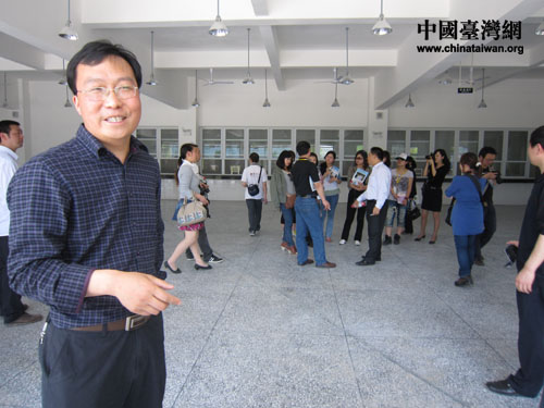 名山縣副縣長劉勇向記者介紹名山縣與臺灣互相援助的情況。2009年臺灣遭受“莫拉克”風(fēng)災(zāi)后,當(dāng)?shù)匕傩占娂娋杩睿ㄖ袊_灣網(wǎng) 朱毅 攝)